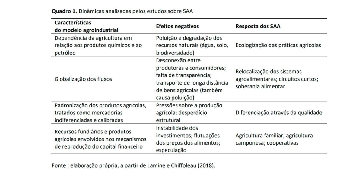 Os SAA surgiram nos anos 2000 a partir de reivindicações de movimentos sociais. Segundo a pesquisa, o termo agrupa diferentes iniciativas que se caracterizam por práticas agrícolas de comercialização e de consumo que buscam soluções frente aos problemas causados pelo sistema agroindustrial vigente.